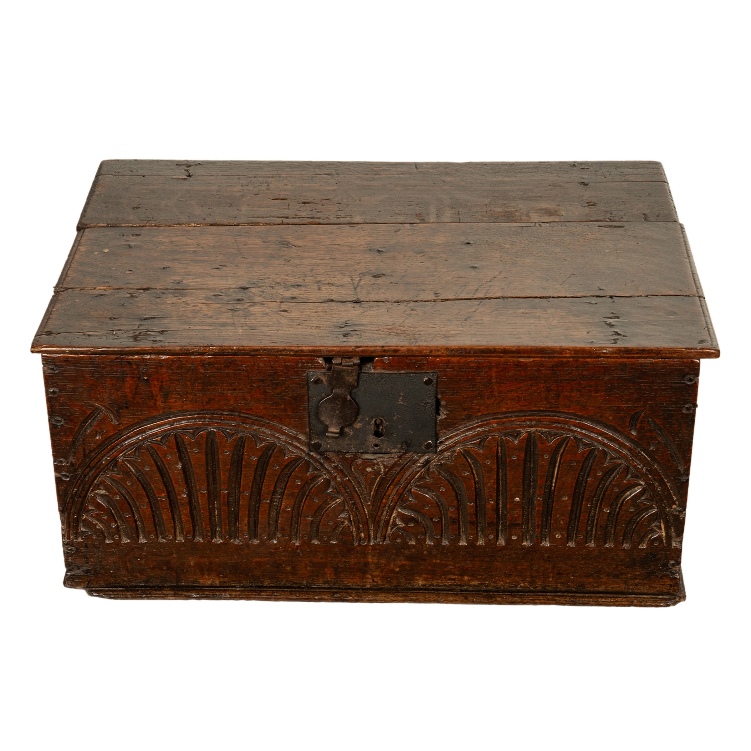A good antique English, Charles II (Carolean) period carved oak bible or document box, circa 1680.