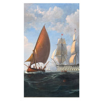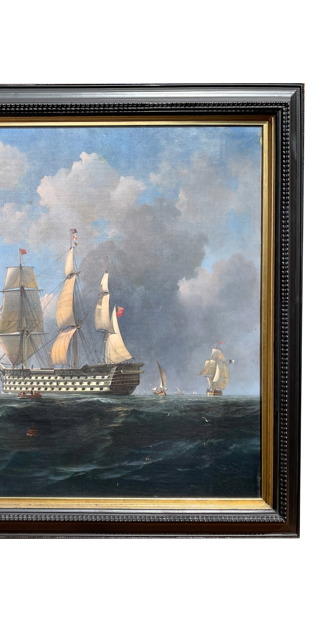 Antique 19th Century Maritime Seascape War Ship Oil Painting HMS Britannia by Robert Strickland Thomas, 1835