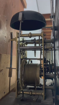 The clock has an eight day mechanism & strikes the hours on a mellow sounding bell, the clock chime can be silenced by not winding the chime arbor, original pendulum & weights, winding key is present.