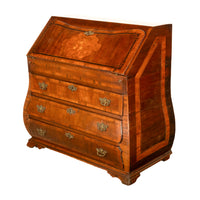 Antique Dutch Rococo Inlaid Marquetry Walnut Bombe Secretary Desk Bureau 1780