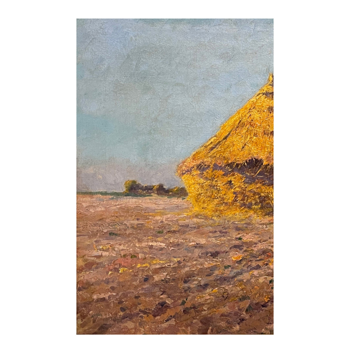 Antique French Post Impressionist Oil Painting Haystack Farm Pastoral Landscape by Max Bouvet 1890