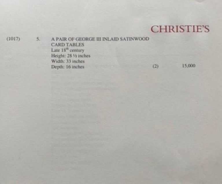 Both tables are in excellent antique condition, this rare pair of antique Goergian inlaid tables are Ex-Christies in 2006 for $15,000.