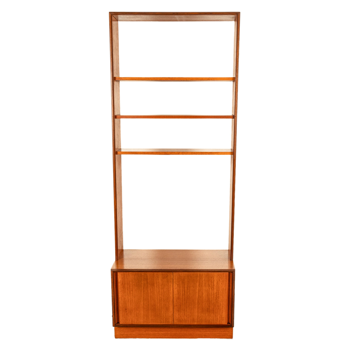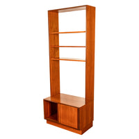Original Mid Century Modern two section Danish style teak bookcase on cabinet, by G-Plan from the " Form Five " range, designed by Roger Bennett, 1967.