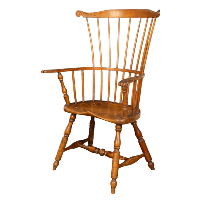 Antique 18th Century American New England Fan Back Maple Windsor Arm Chair 1780