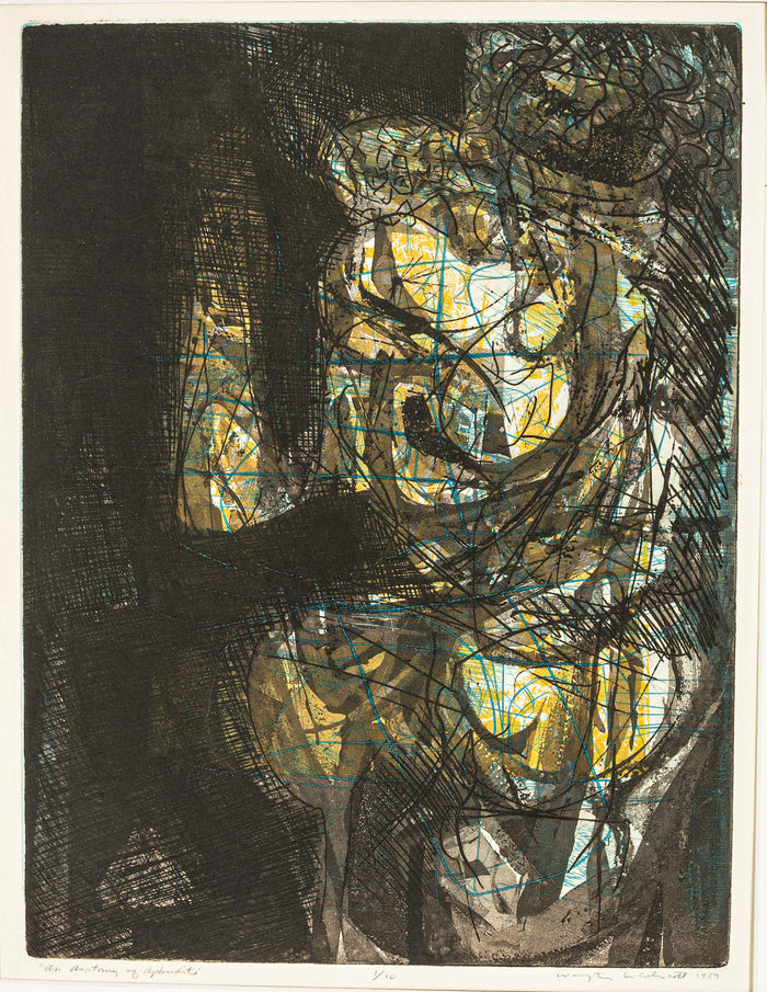 African American Abstract Expressionist Etching Aquatint "Anatomy of Aphrodite" by Warrington Colescott, 1959