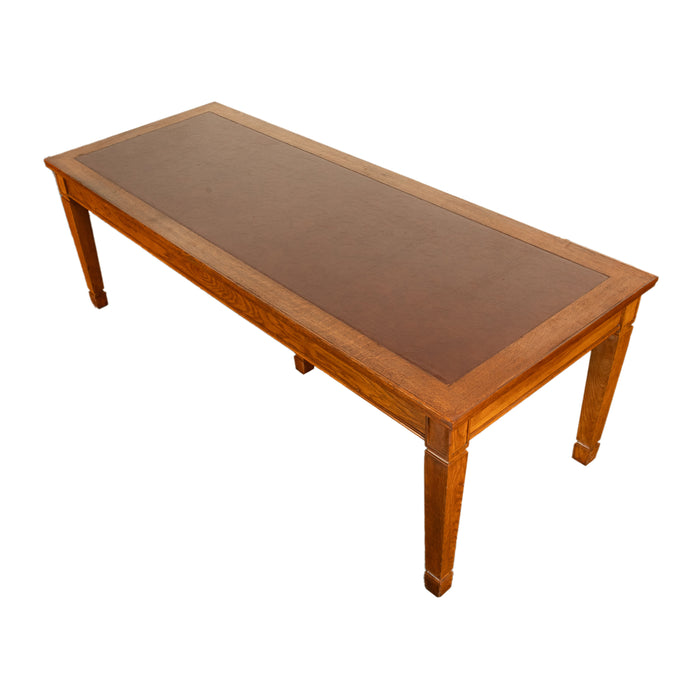 Long Antique Oak Arts & Crafts Five Leg Library Conference Dining Table 1900