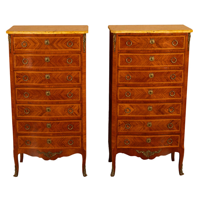 Pair Antique French Semainier Ormolu Marble Chests of Drawers by Kahn & Cie 1895