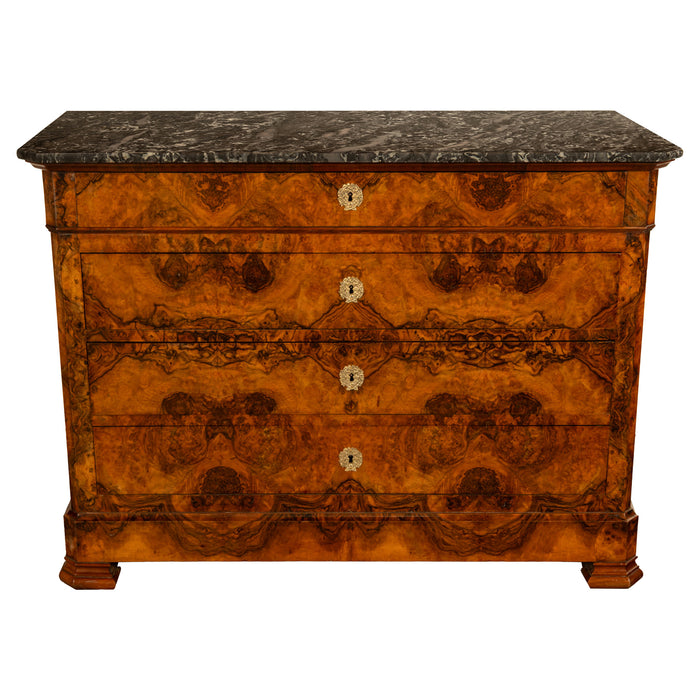 Antique French Walnut & Marble Louis-Philippe Walnut Commode Chest Drawers 1840