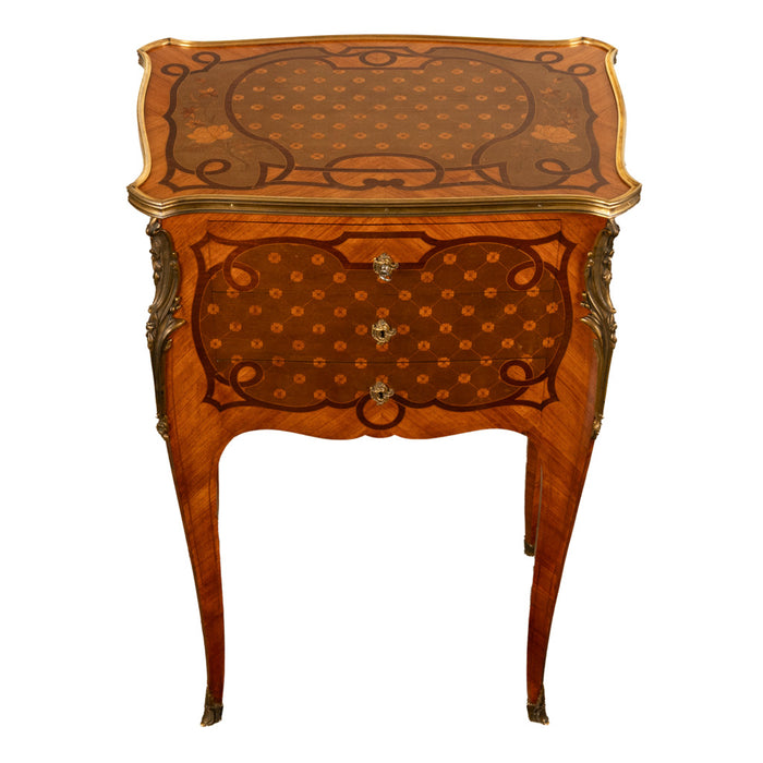 Antique French Marquetry Ormolu Side Table 3 Drawer Cabinet Commode Paul Sormani
