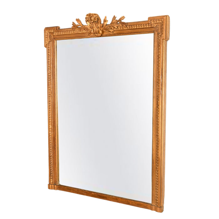 Large Antique 19th Century French Louis XVI Giltwood Crested Wall Mirror 1850