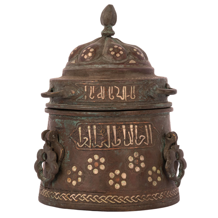 12th Century Islamic Persian Khurasan Silver Inlaid Bronze Calligraphy Inkwell