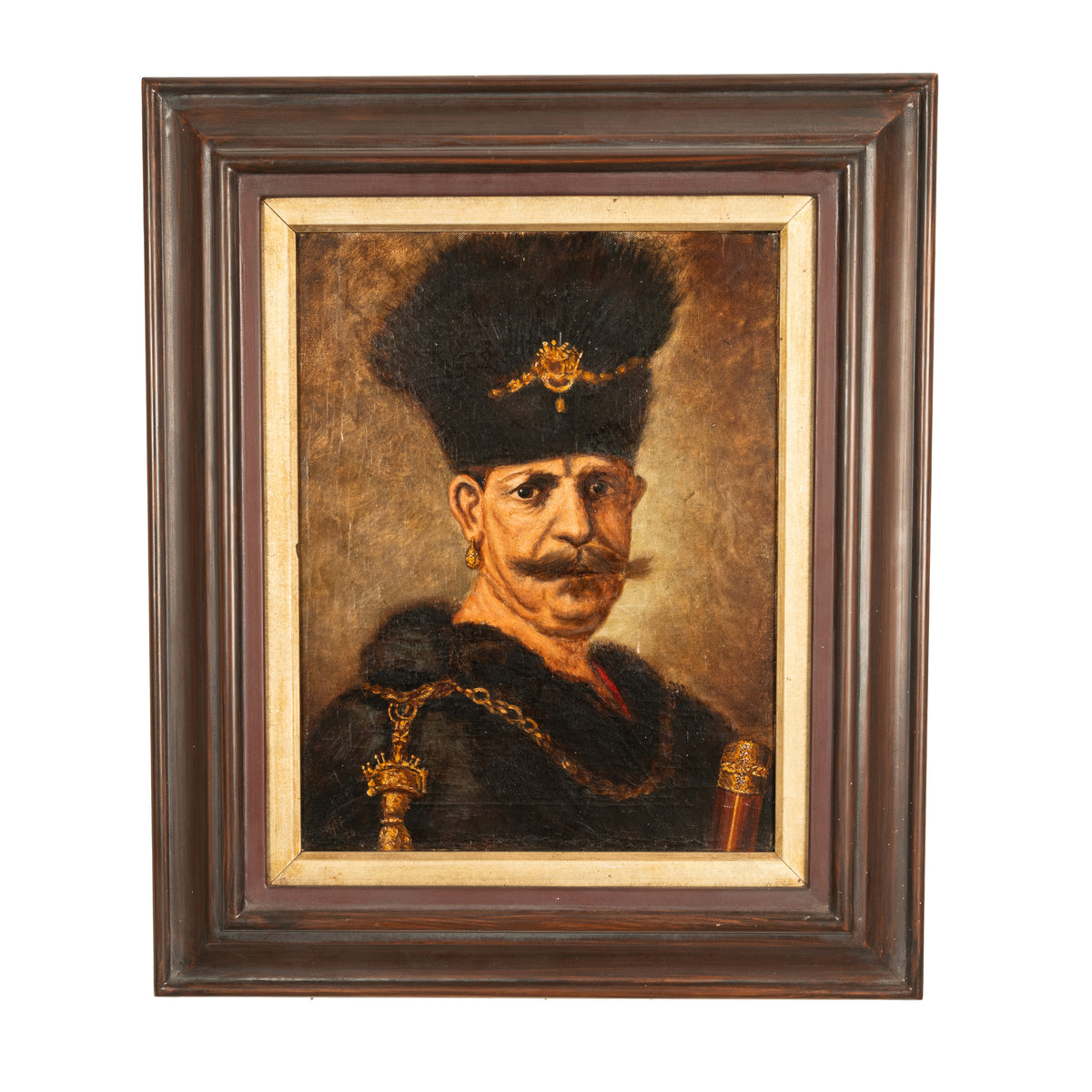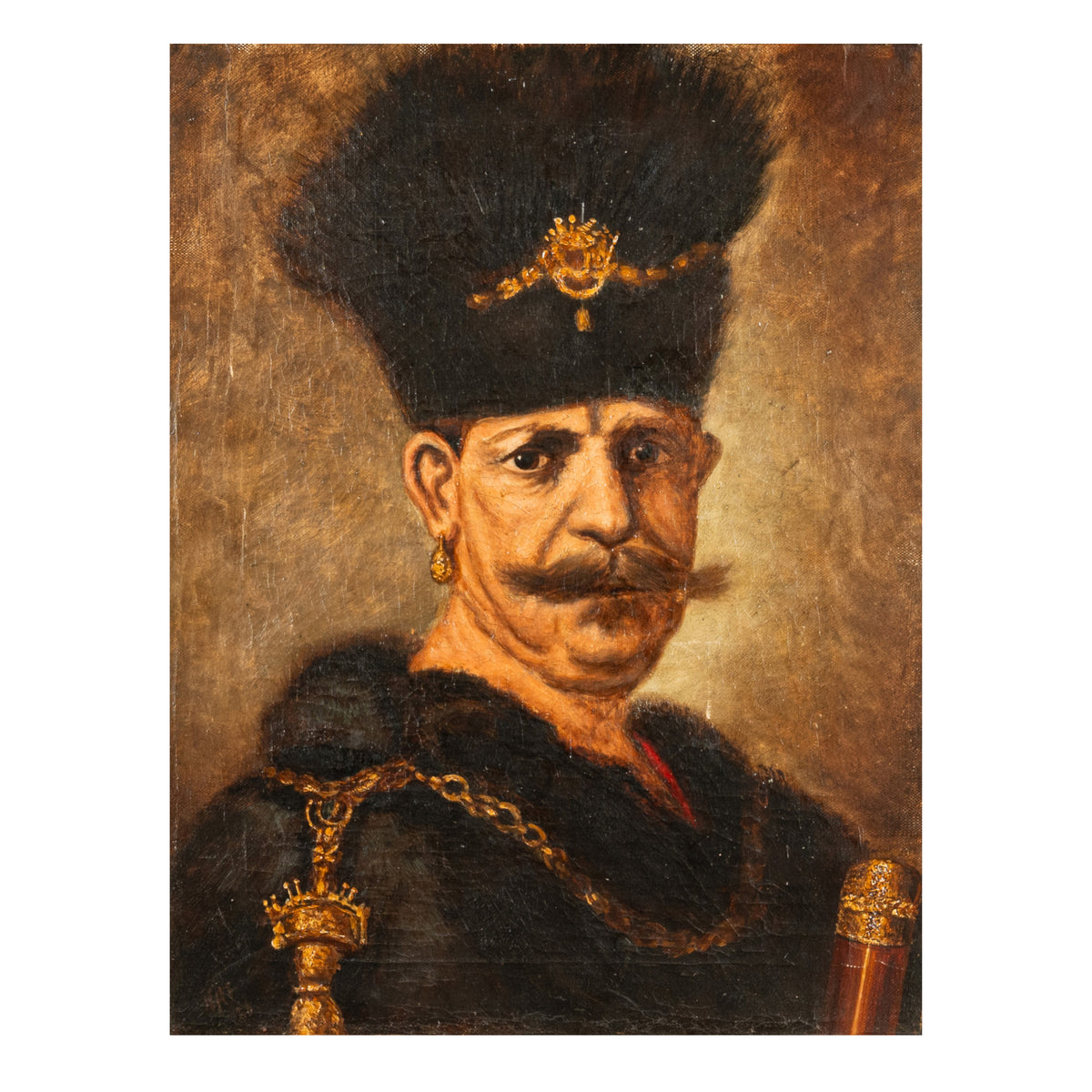 Antique oil on canvas of a Russian or Polish nobleman, painted by Rembrandt van Rijn in 1637.