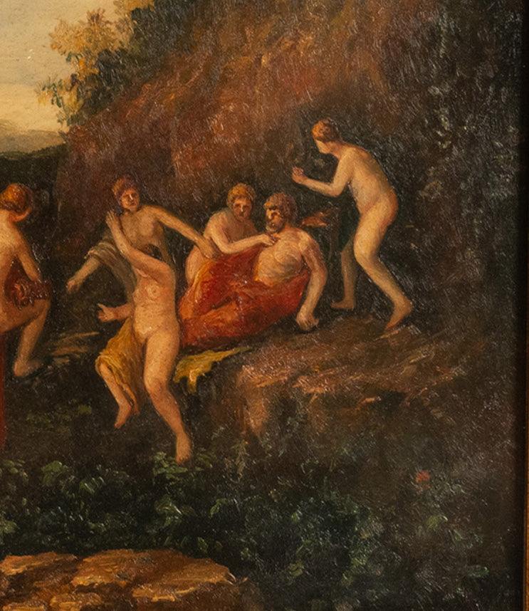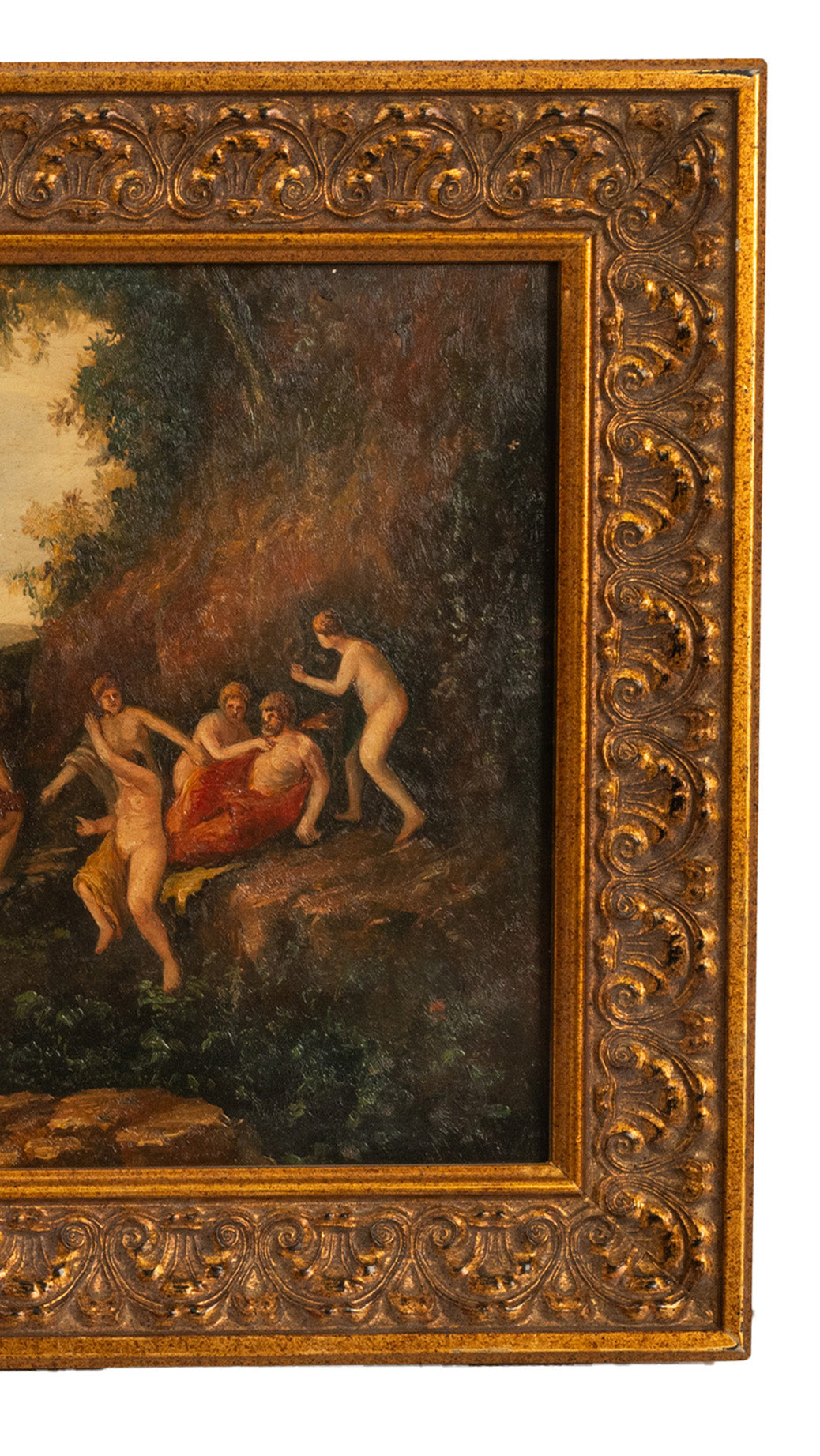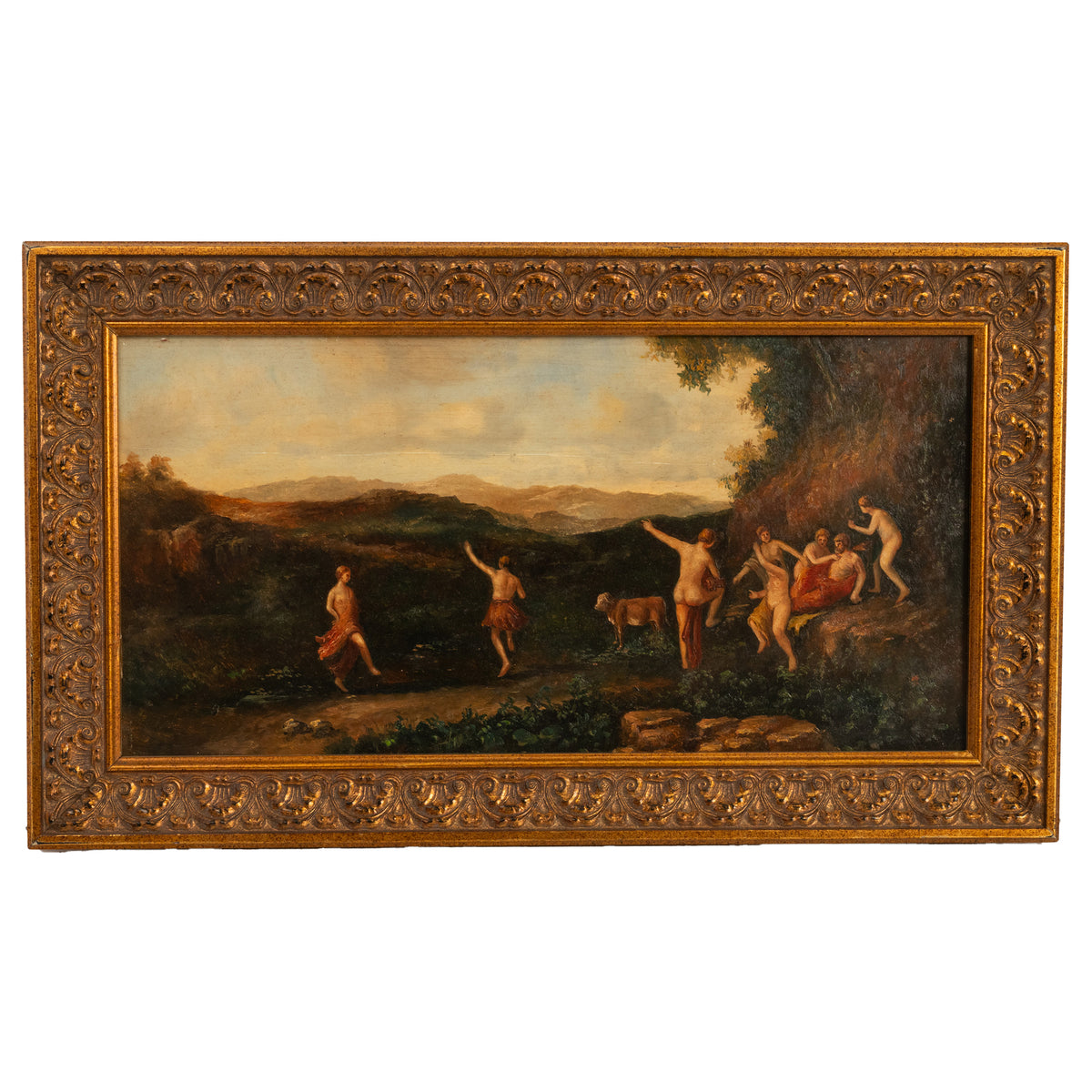 Antique 19th Century Neoclassical Bacchanal Oil Painting Dancing of the Nymphs 1850 after Cornelis van Poelenburgh