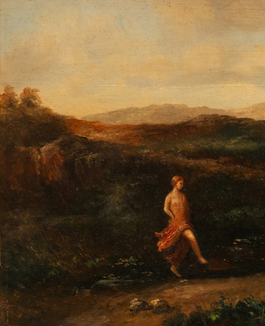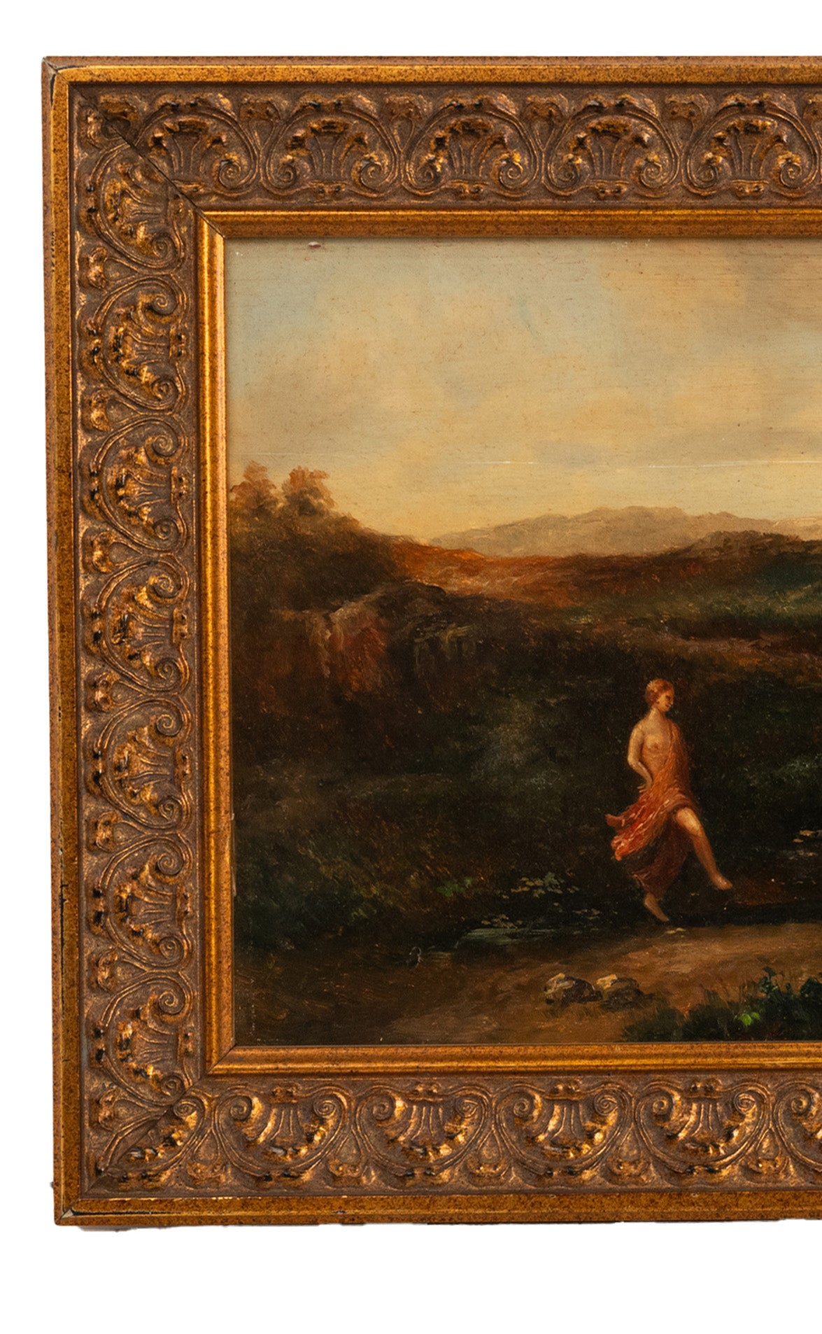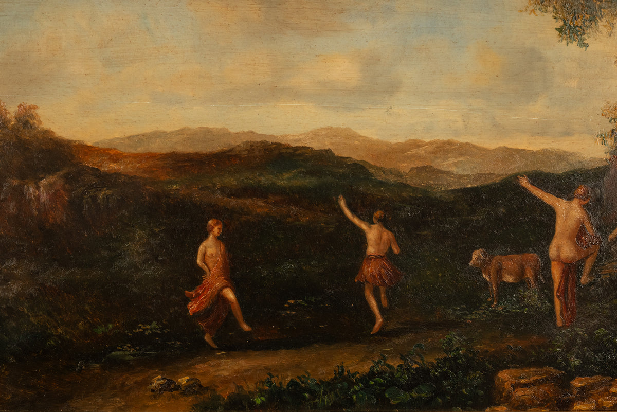 A good antique Dutch/Flemish oil on panel painting, after Cornelis van Poelenburgh, circa 1850.