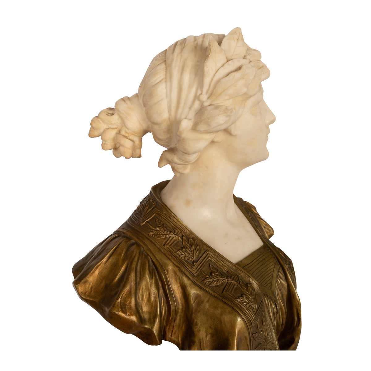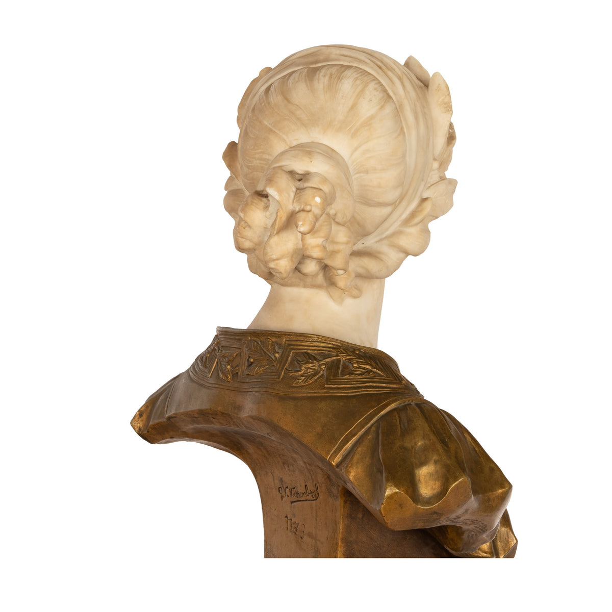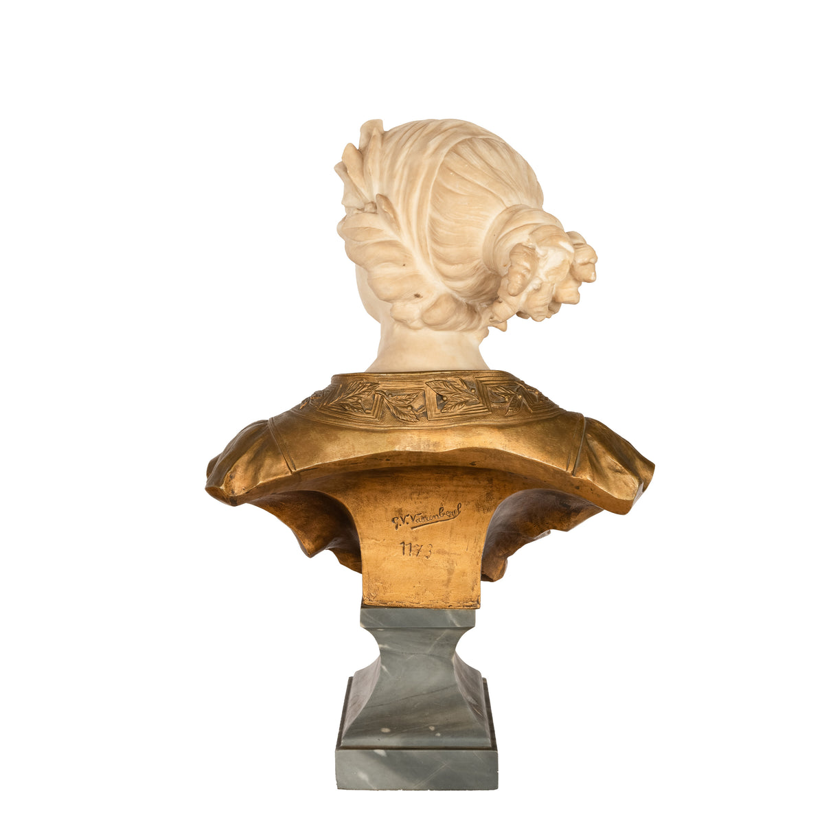 Antique Art Nouveau Female Carrara Marble Gilt Bronze Bust Statue Sculpture by Gustave Van Vaerenbergh 1900