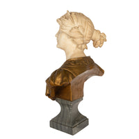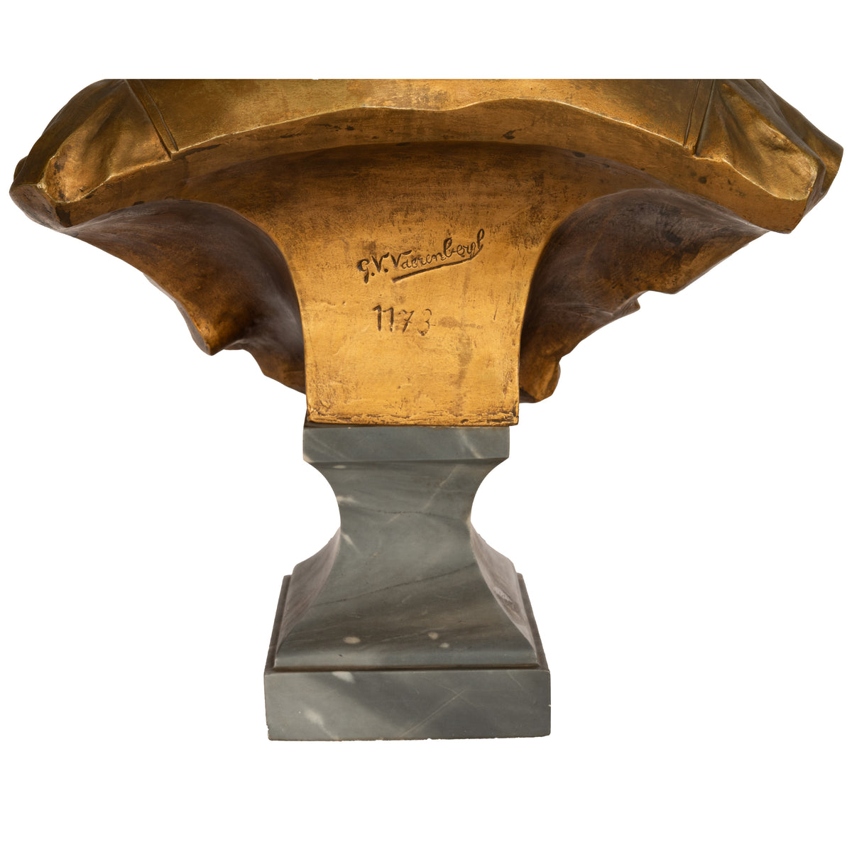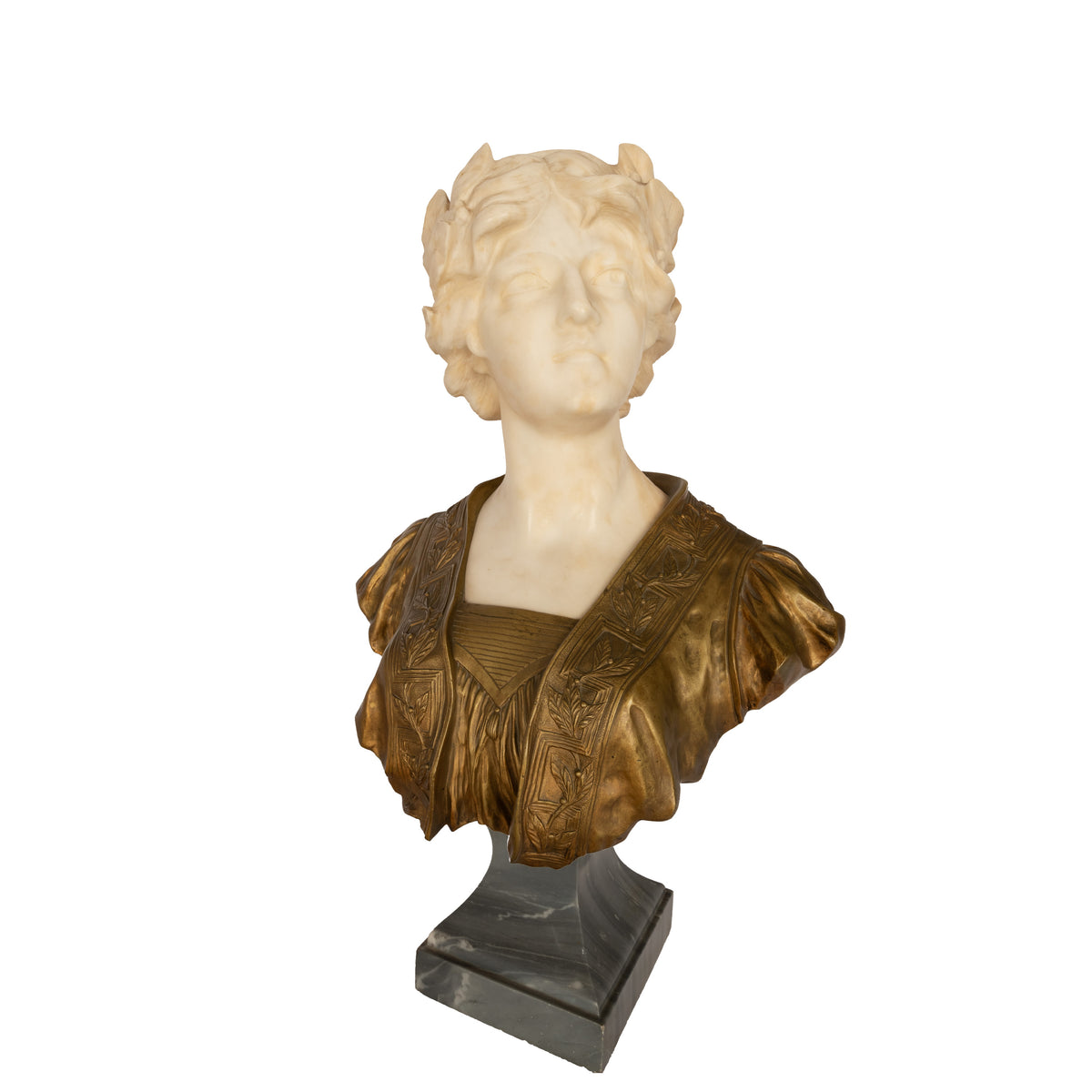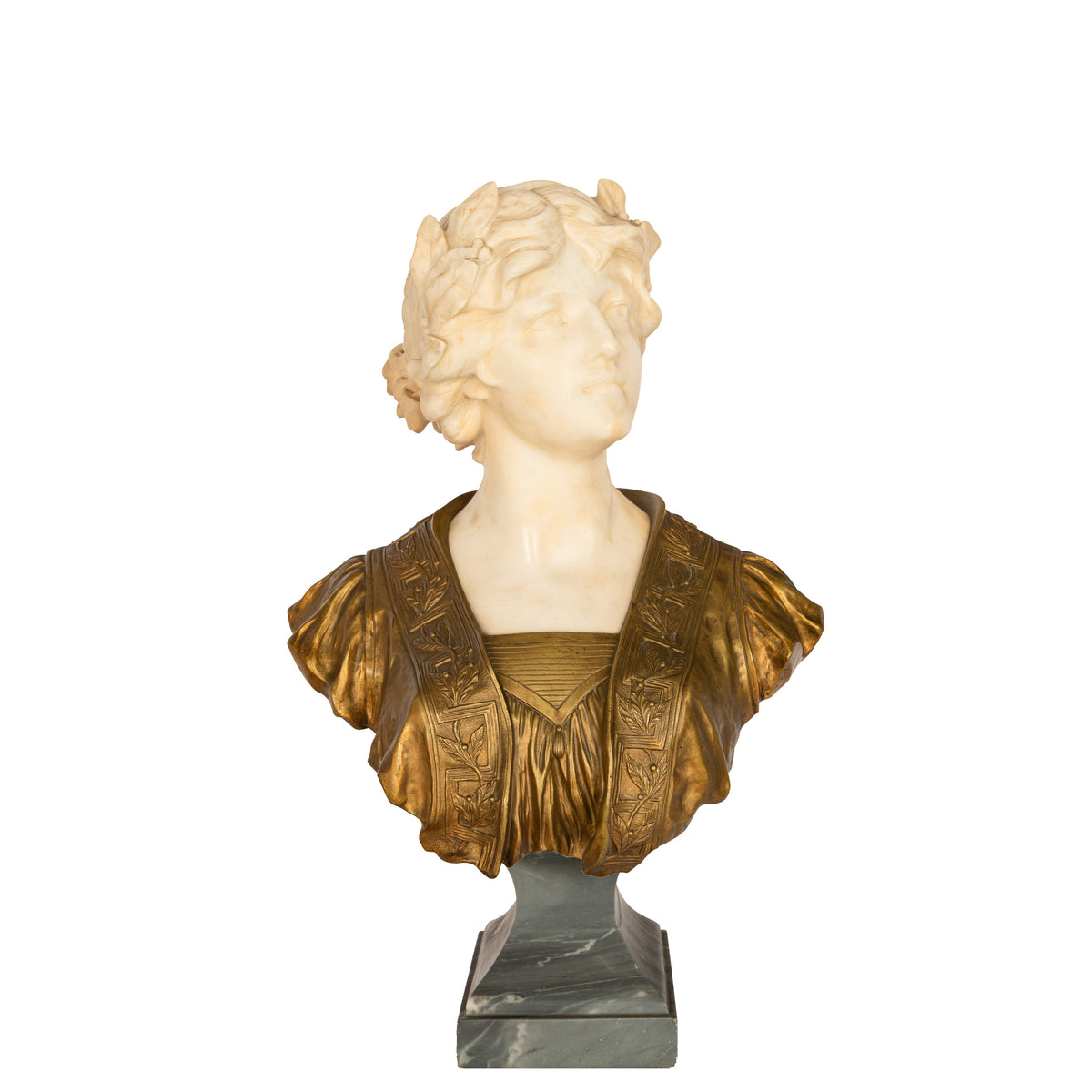 Antique Art Nouveau Female Carrara Marble Gilt Bronze Bust Statue Sculpture by Gustave Van Vaerenbergh 1900
