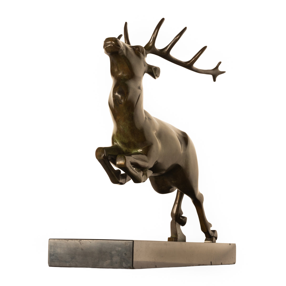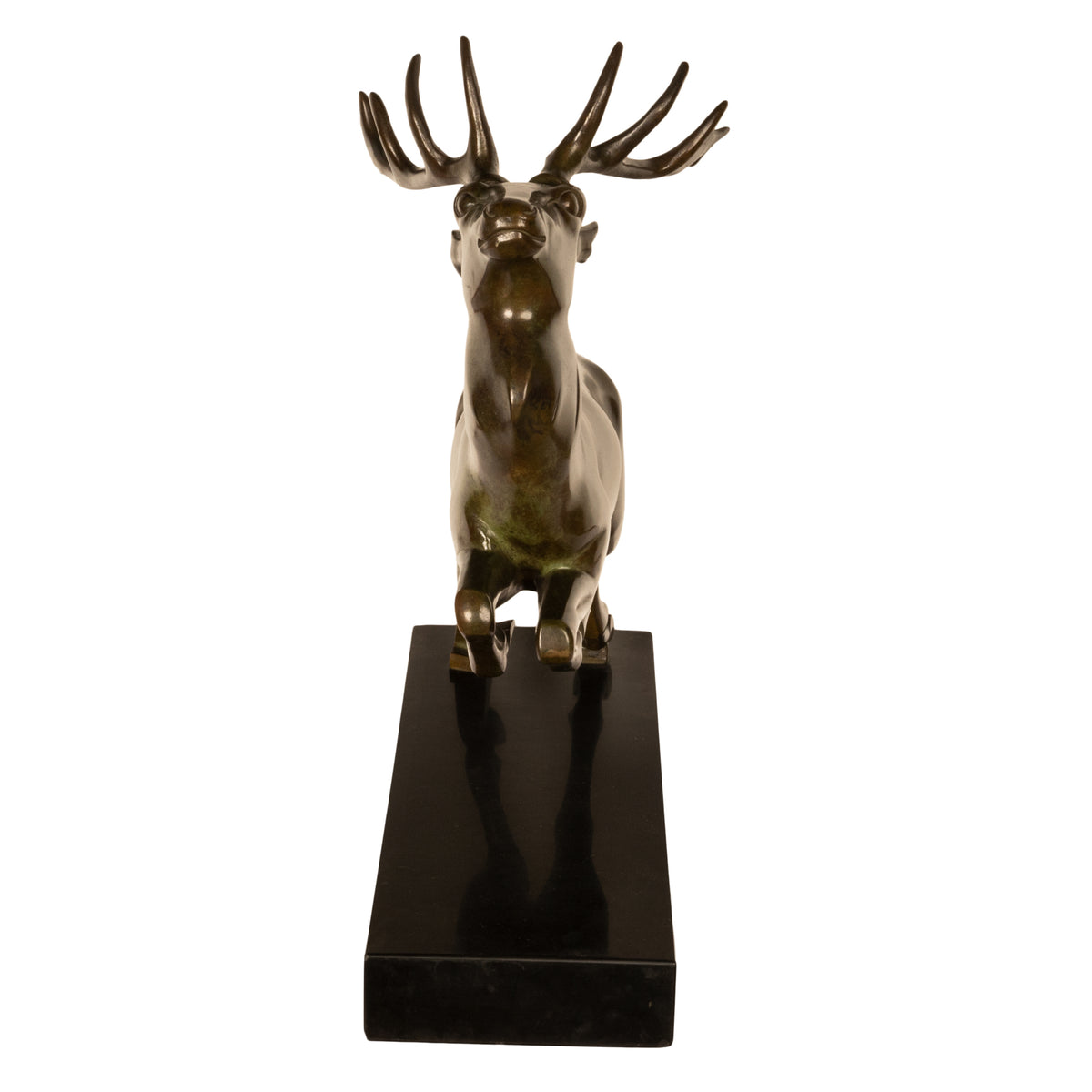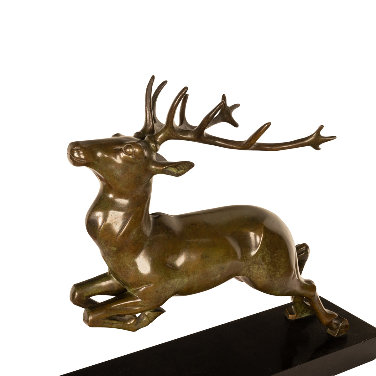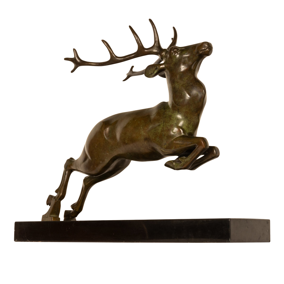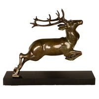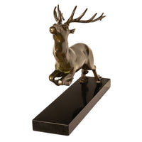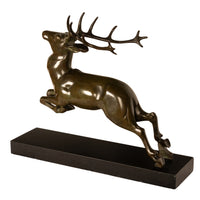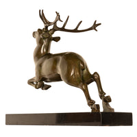 Antique French Art deco Leaping Stag Bronze Statue Sculpture Bronze marble by Georges H. Laurent 1925