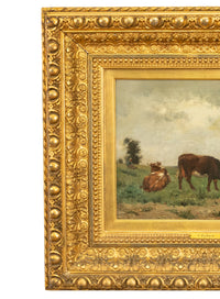 Antique French Oil on Canvas Painting Barbizon School Landscape Cows by Victor Jean Binet 1875