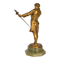 Antique French Polish Gilt Bronze Statue Sculpture Figure Sword Bladesmith By Henryk II Kossowski 1890