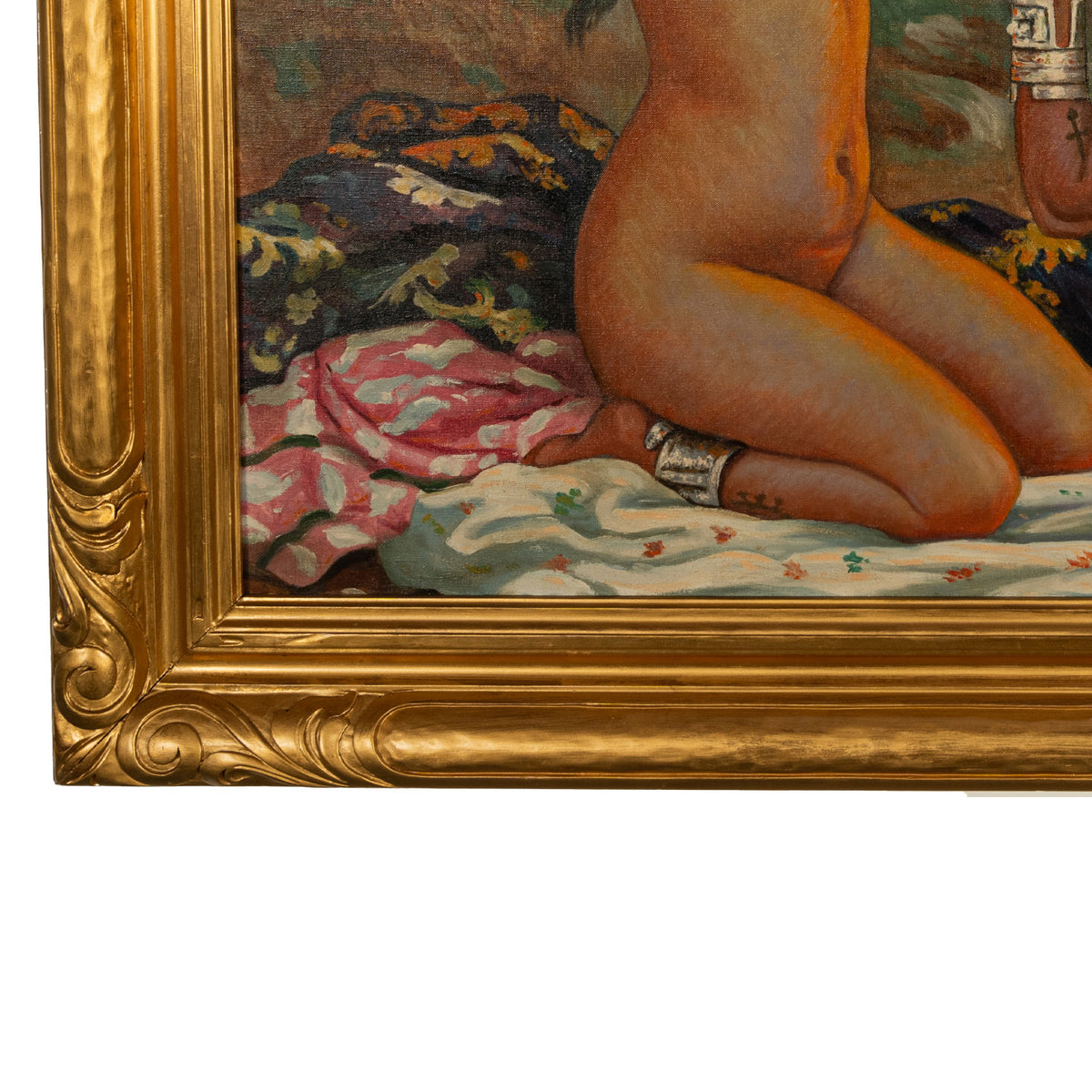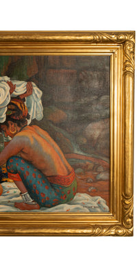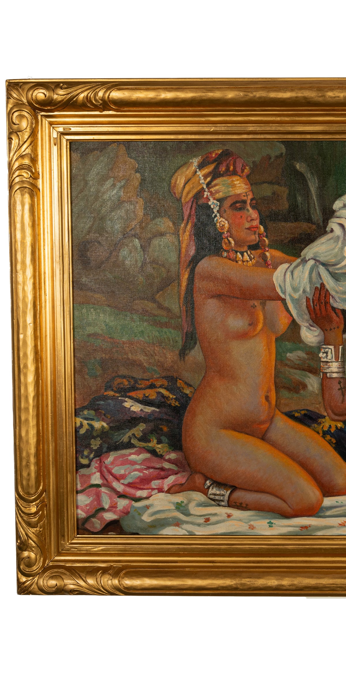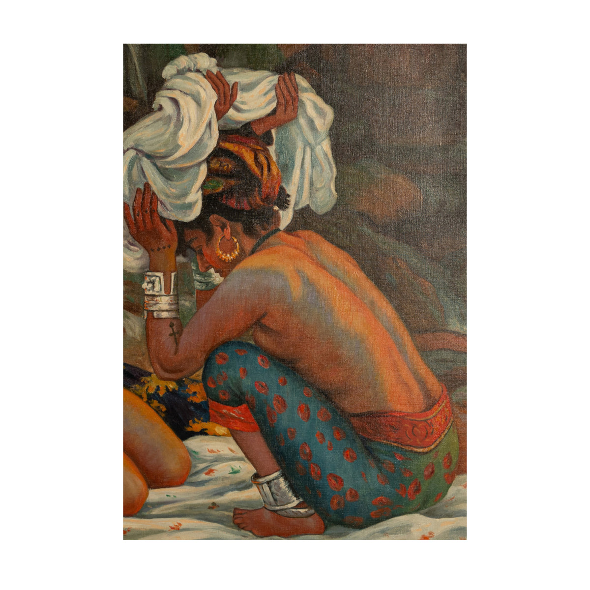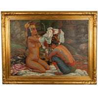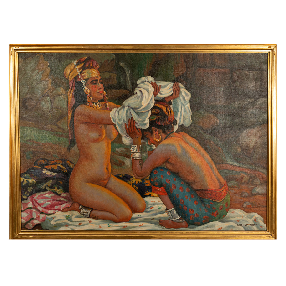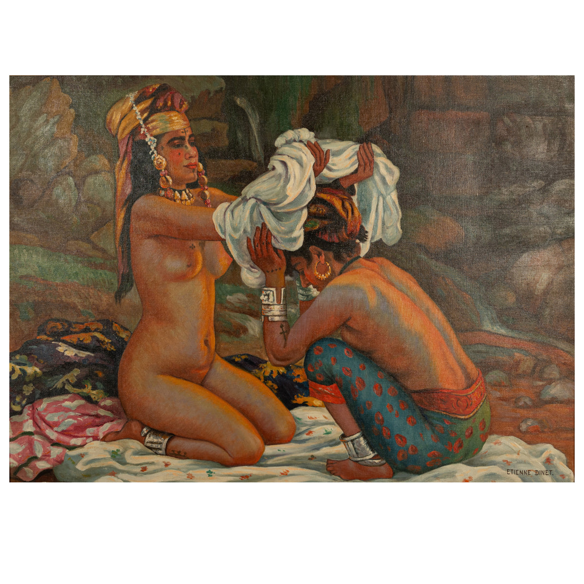 Large Orientalist Oil Painting North African Algeria Nude Tattooed Berber Women by Nasreddine Dinet Circa 1910