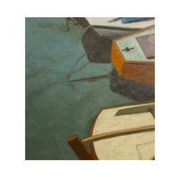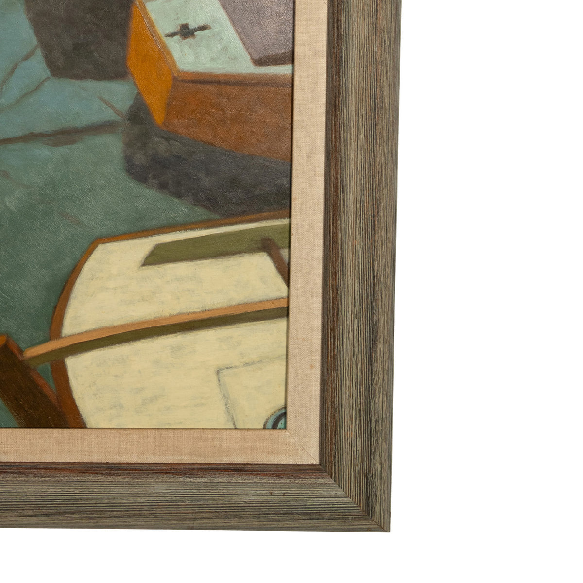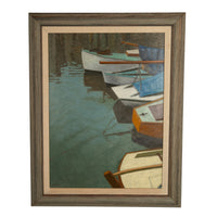 A rare & large oil on canvas painting by Picasso's lithographer, French artist Laurent Marcel Salinas (1913-2010), "Boats at Dock", circa 1975.