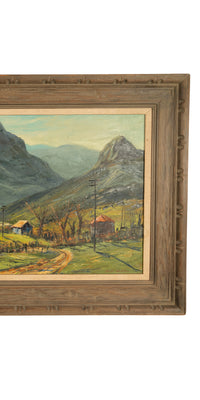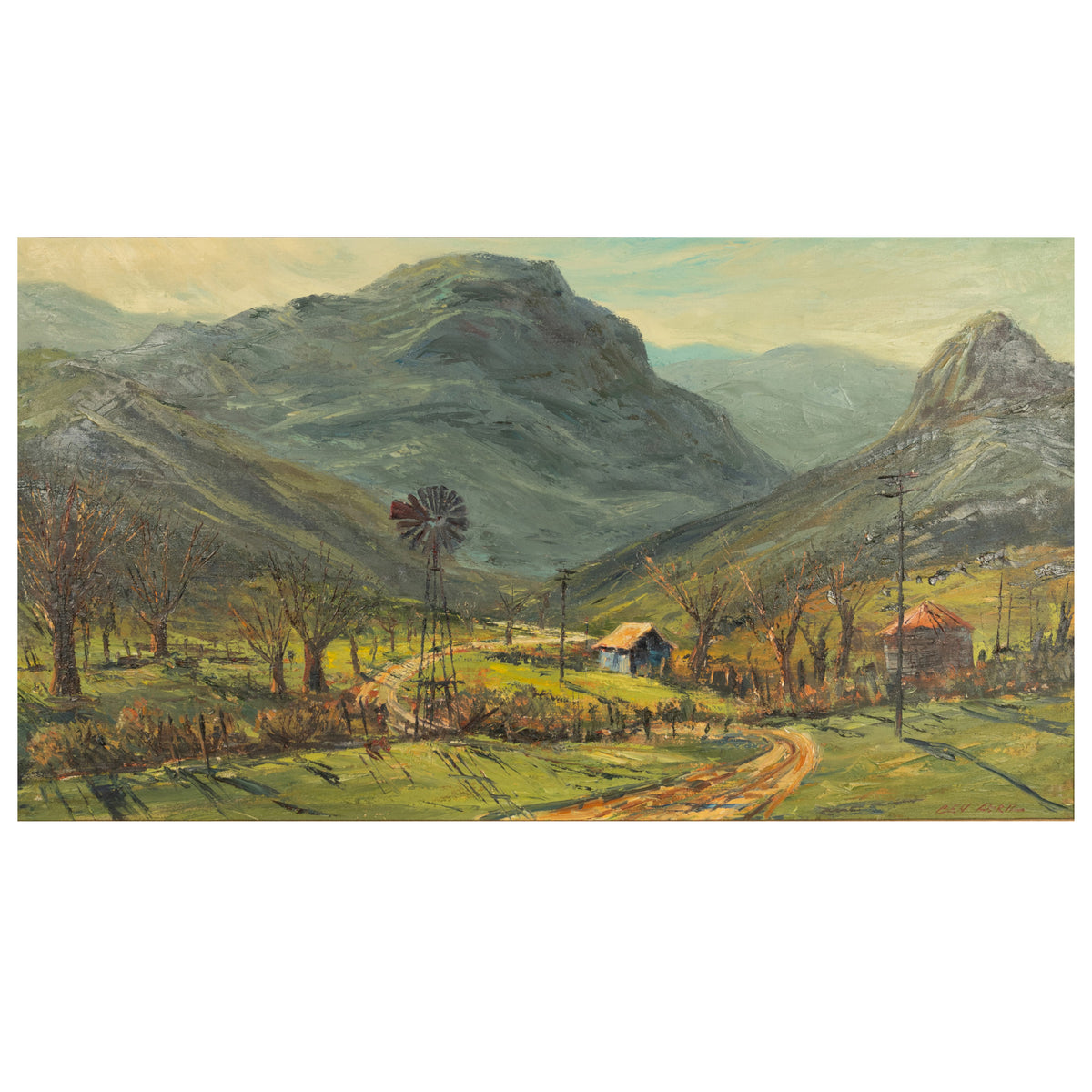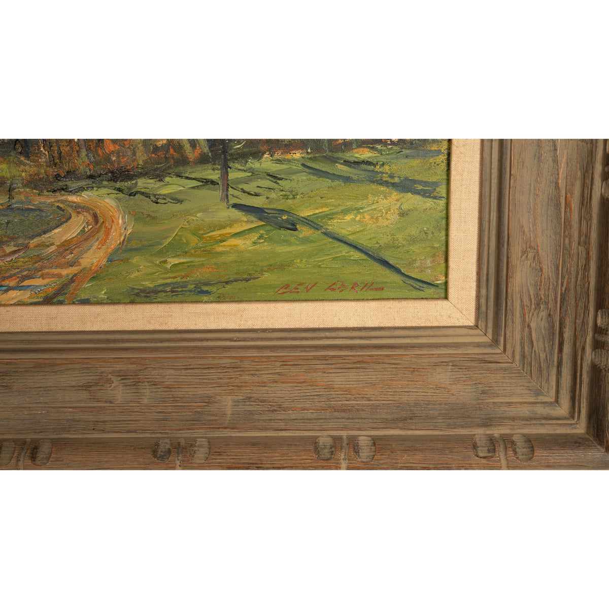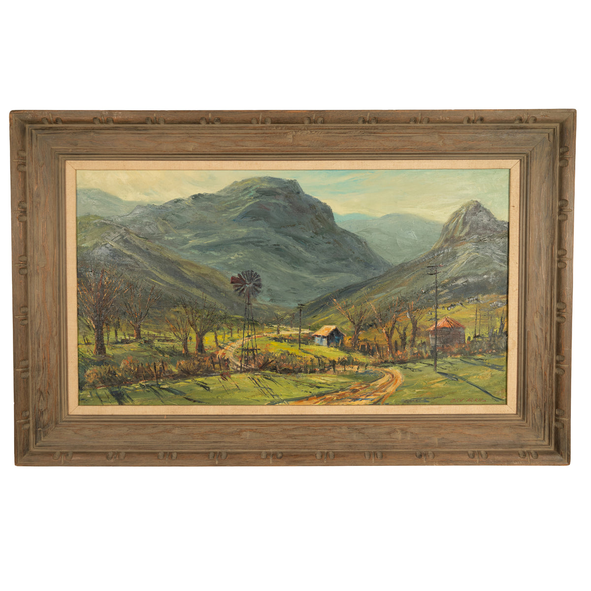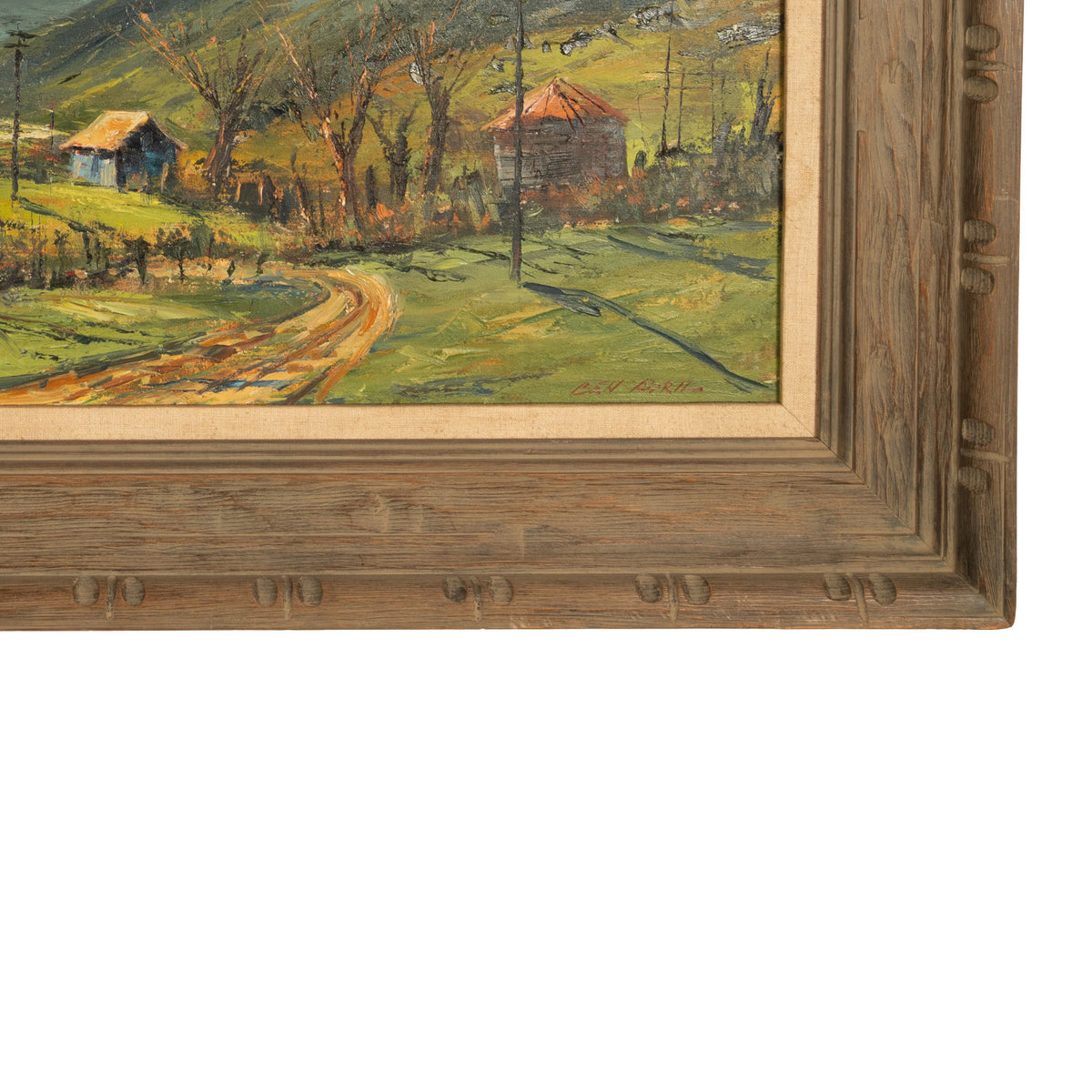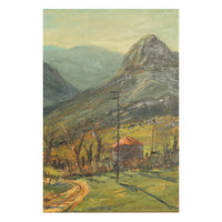 The artist a California native documented the city of Los Angeles and scenes of the California countryside now vanished, (please see biography below) . This large and impressive painting exemplifies the work of the artist, a impressionistic view of an old farmstead nestled at the base of the San Bernardino Mountains, with a windmill to the foreground. The painting is signed lower right "Ben Abril", housed in the original weathered 'barn wood' style frame, condition is excellent and ready to hang on your wall.
