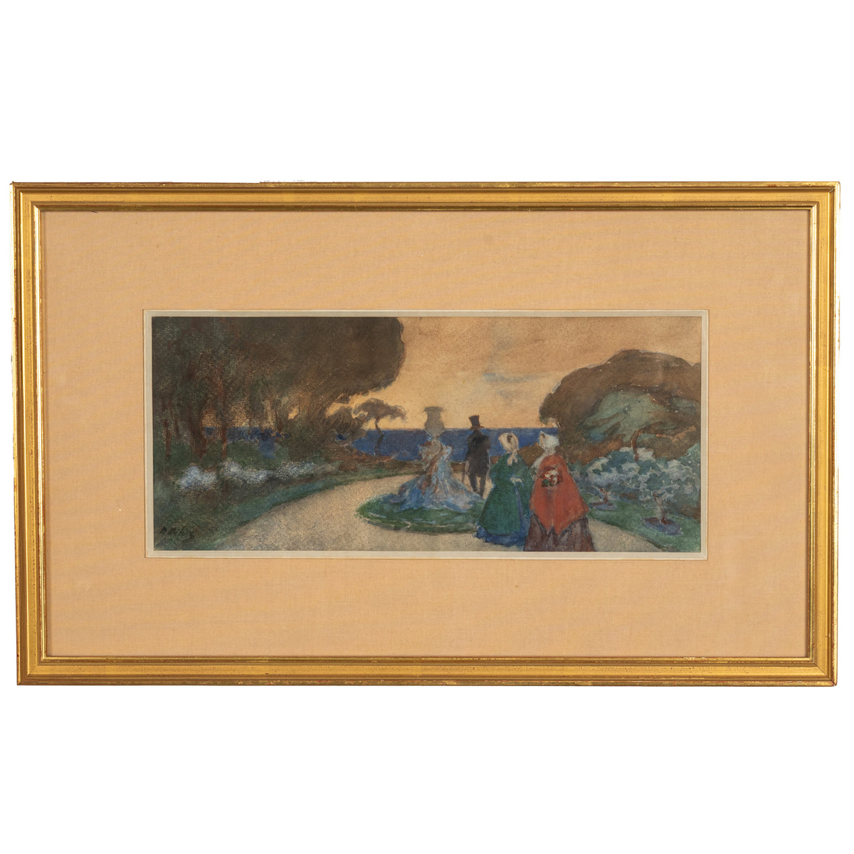Russian French Impressionist Watercolor Gouache Figurative Landscape Painting by Pyotr Alexandrovich Nilus 1925