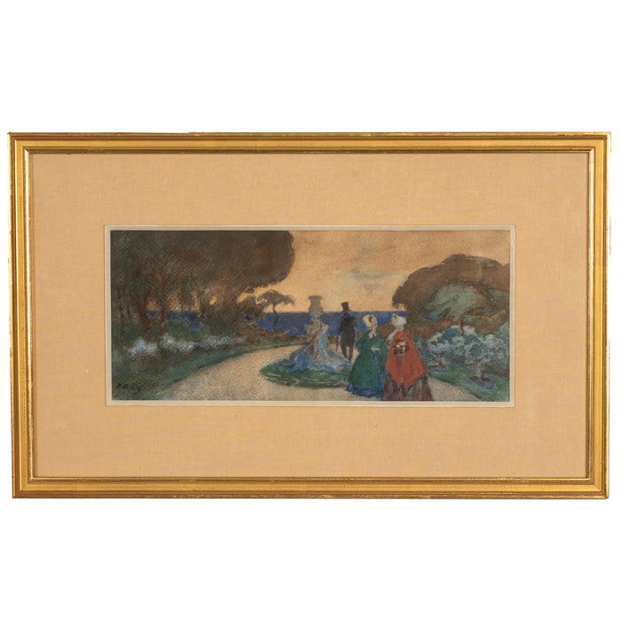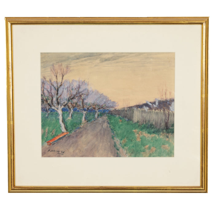 Russian French Impressionist Watercolor Gouache Figurative Landscape Painting by Pyotr Alexandrovich Nilus 1925