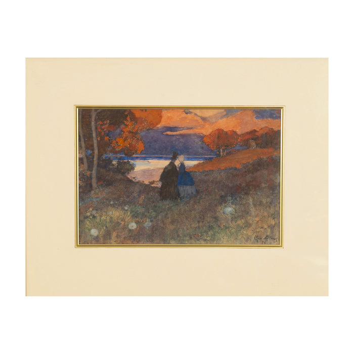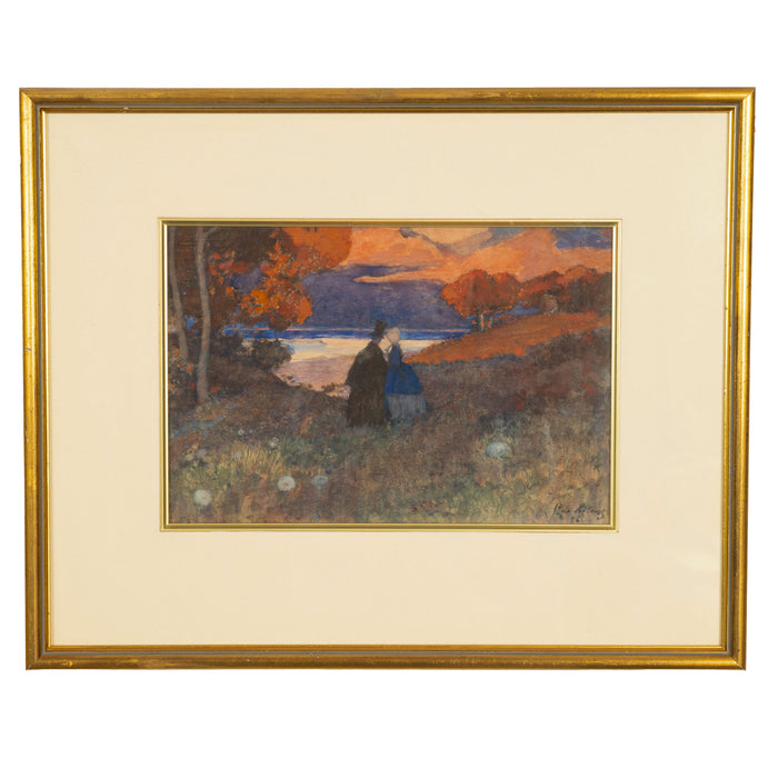 Antique Russian French Impressionist Watercolor Gouache Painting Romantic Couple by Pyotr Alexandrovich Nilus 1926