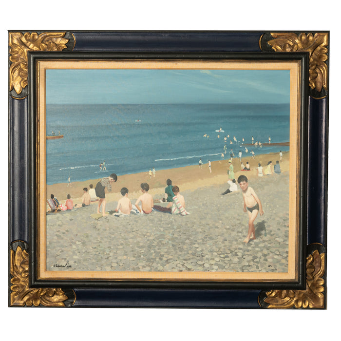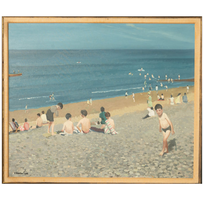 Irish Modernist Oil on Canvas Painting "Young Bathers" Children on the Beach by Henry Robertson Craig