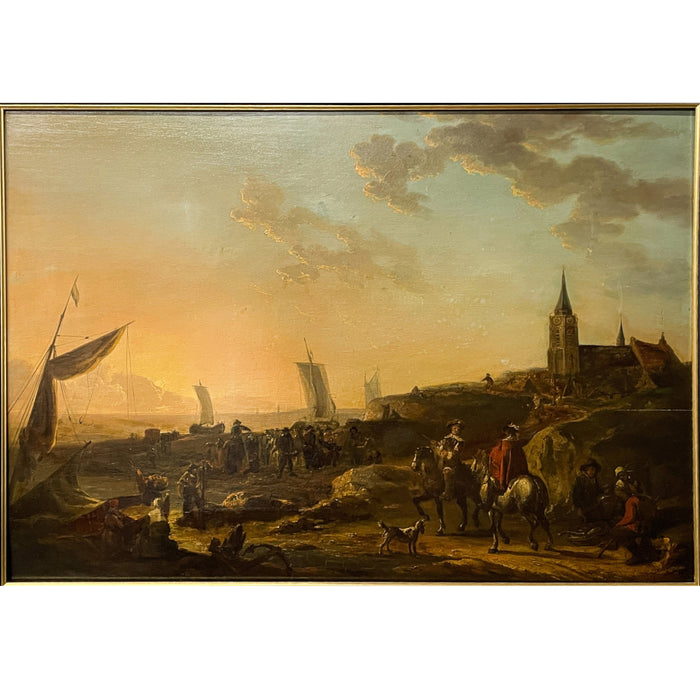 Antique 17th Century Large Dutch Old Master Oil on Panel Landscape Painting Jan Van Goyen 1650