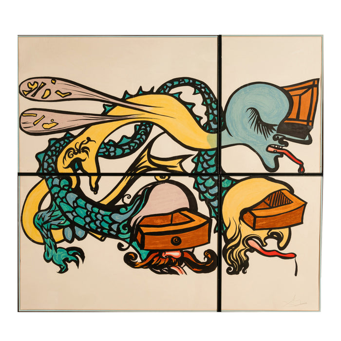 Monumental Original Surrealist Signed Color lithograph "Puzzle of Life" by Surrealist Spanish Artist Salvador Dali 1974 COA