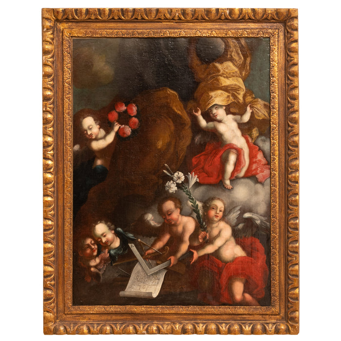 Austrian Old Master Baroque Oil on Canvas Painting Architecture Allegory Cherubs Franz Xaver Karl Palko 1750