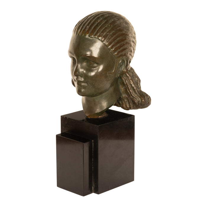 Antique French Art Deco Bronze Bust Sculpture Head of Beautiful Young Girl Marcel Andre Bouraine & Etling Paris 1920