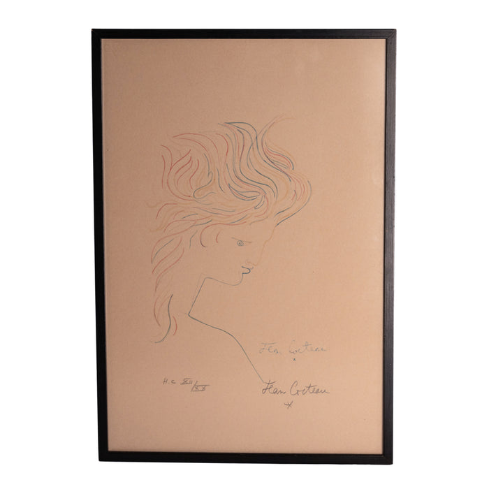 Surrealist Tete en Profil Lithograph in Color Young Womans Head Hors de Commerce by Jean Cocteau 1950