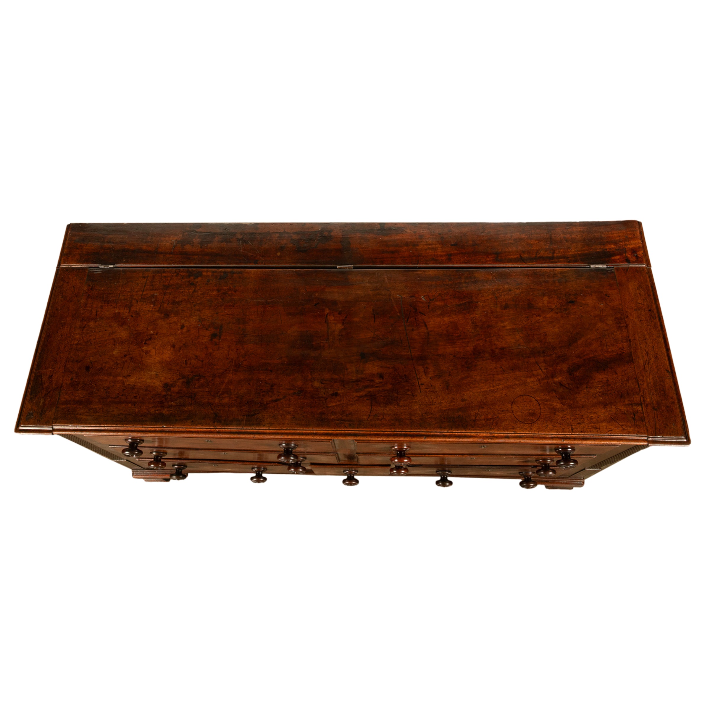 This very attractive and all original Georgian chest chest having a lift up hinged lid providing lots of clean and aroma free storage, the sides of the chest with ribbed pilasters, both ends of the chest having recessed panels. The front of the chest having seven drawer fronts with all the original turned pulls, the top four drawers are dummy. There are three drawers to the base above a shaped apron, the chest is raised on ogee shaped bracket feet.