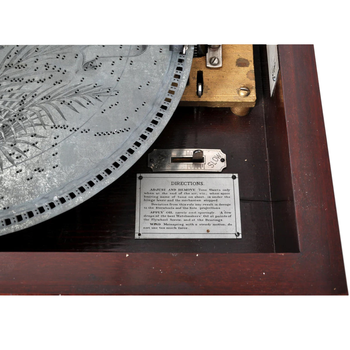 Antique 14" Disc Music Box in Mahogany Case by Criterion, Circa 1880