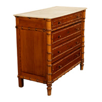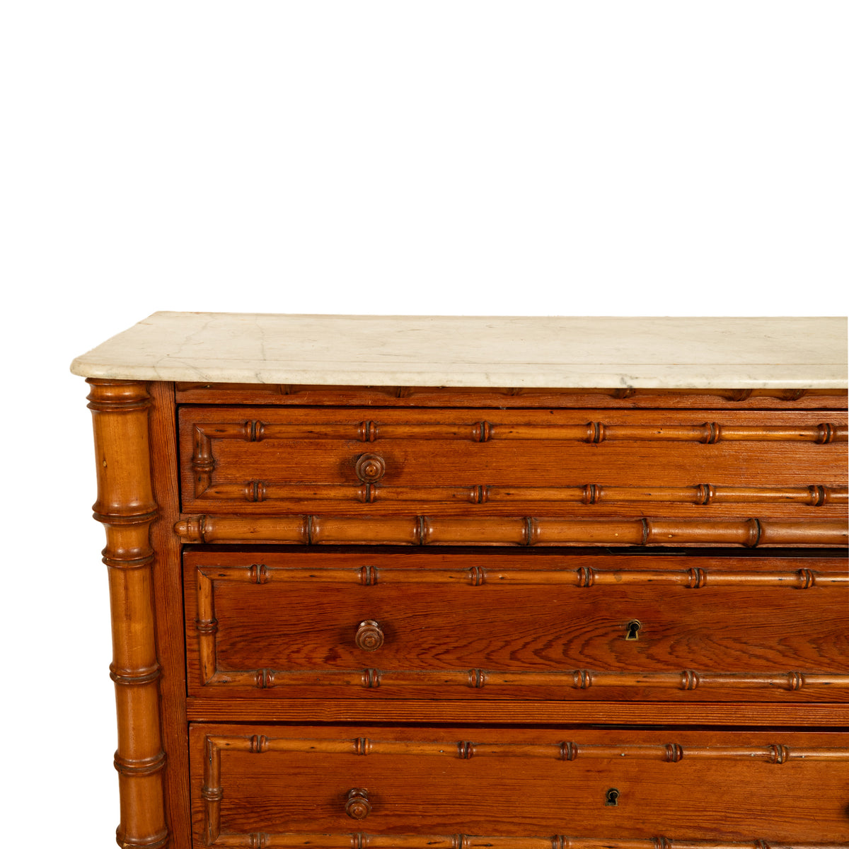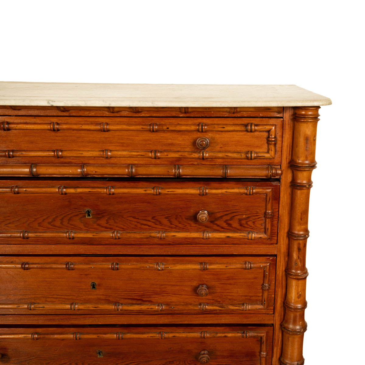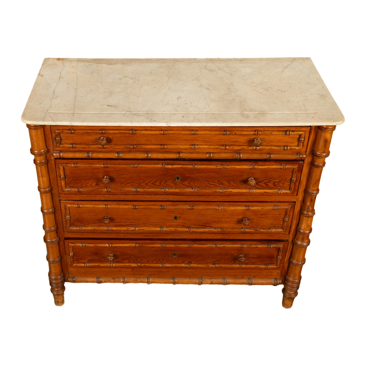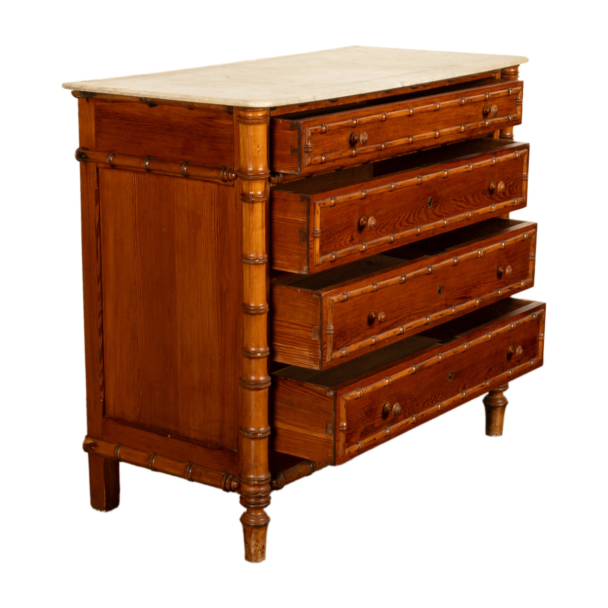 Antique 19th Century French Faux Bamboo Pine White Marble Chest Drawers Commode Circa 1880