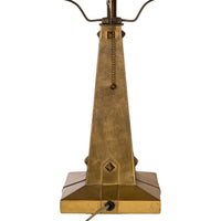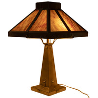 Antique American Arts & Crafts Mission Stained Slag Glass Brass Table Lamp 1910