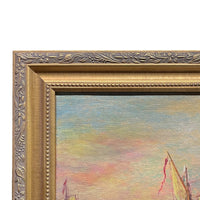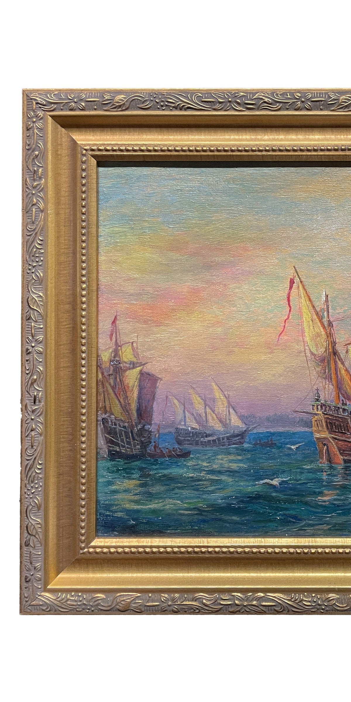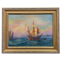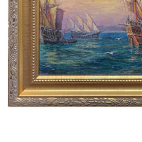 Antique American Nautical Ships Oil Painting "The Discovery" Jamestown Virginia by William Steeple Davis 1921