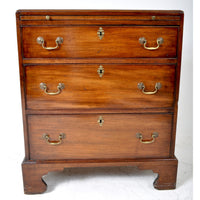 Antique Gentleman's Georgian Chest of Drawers, Circa 1760. Made of solid Cuban mahogany, the chest of diminutive size having a brushing slide to the top with three graduated drawers below. The chest standing on shaped bracket feet and having brass hardware.