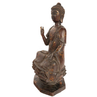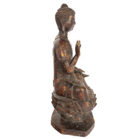 The main features of this pose, aside from the raised right hand, is that The Buddha can be depicted either sitting or standing, and the left hand may either be extended outward or palm up in the lap. This statue signifies courage and offers protection from fear, delusion and anger.