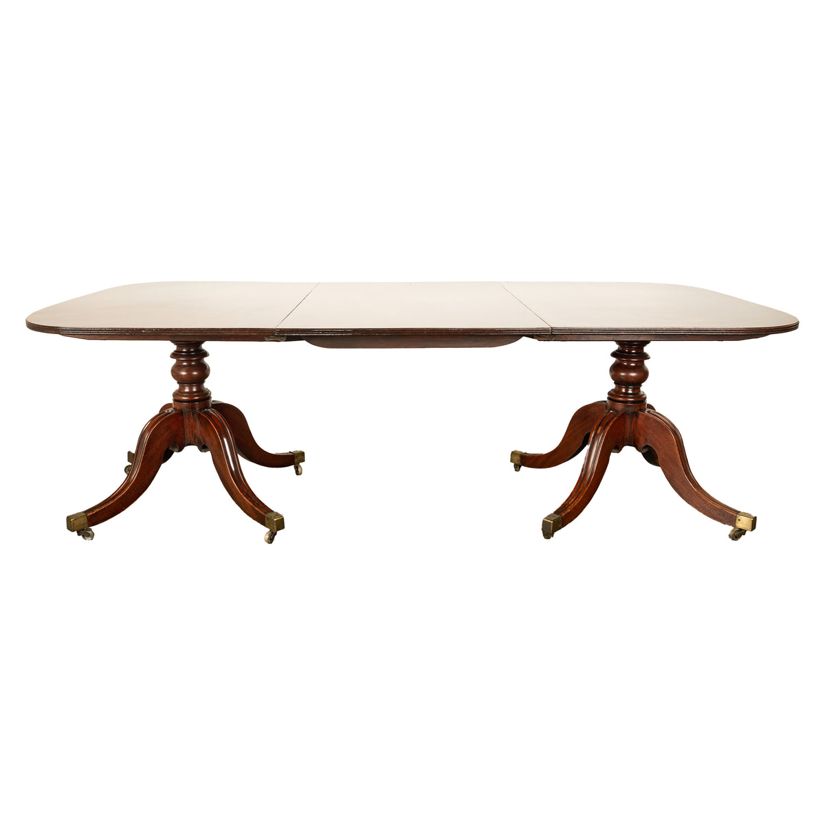 Antique Georgian Regency Cuban Mahogany Twin Pedestal Dining Table Tilt-Top 1810