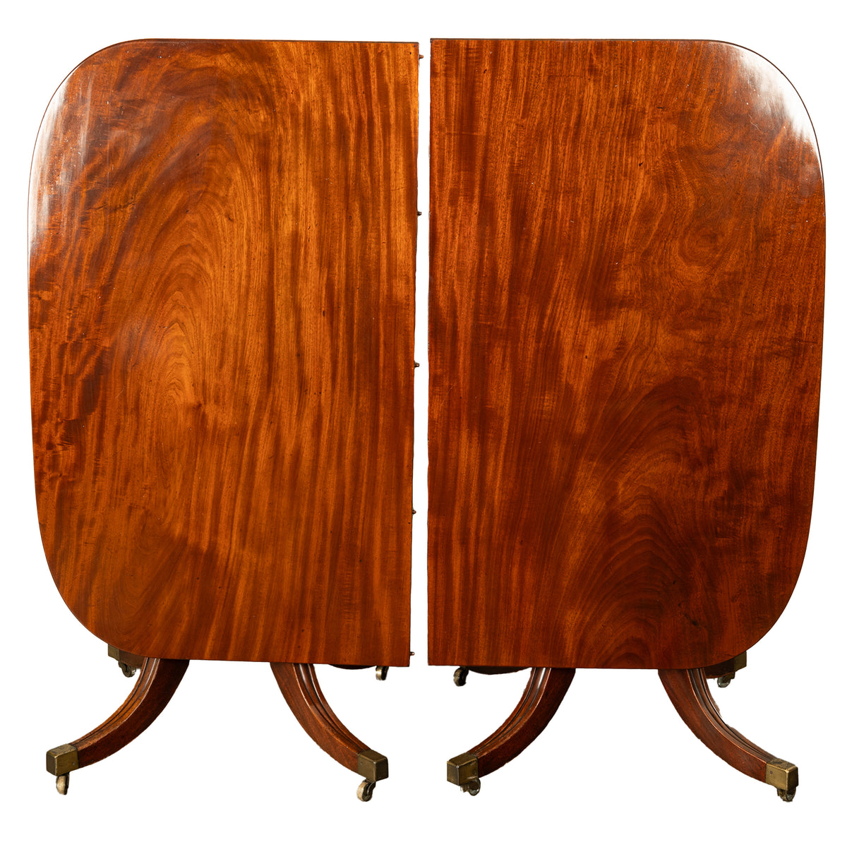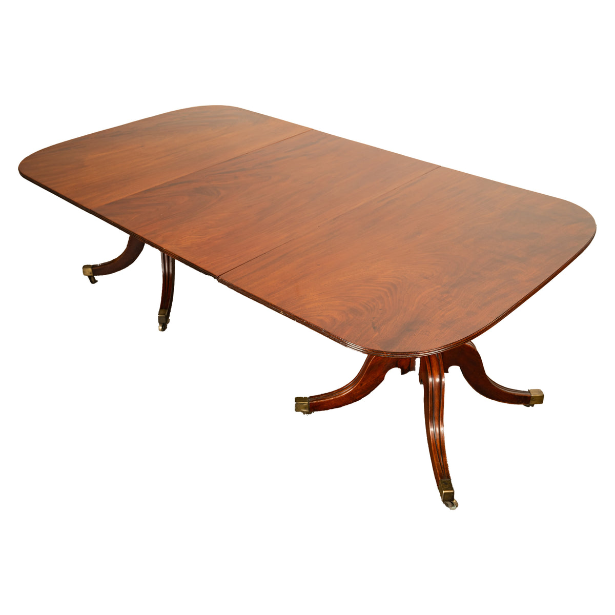 A very good antique Cuban mahogany George III Regency period twin pedestal dining table, circa 1810.