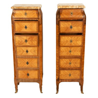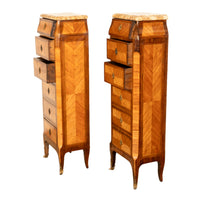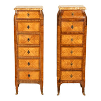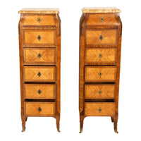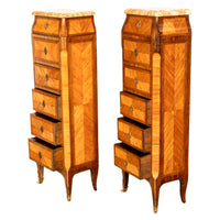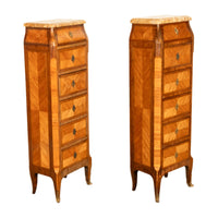 Antique Pair French Louis XV Chiffonier Marble & Kingwood Tall Lingerie Chests Circa 1880