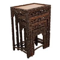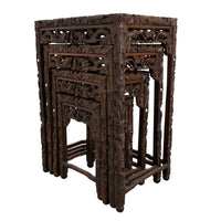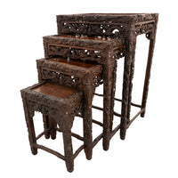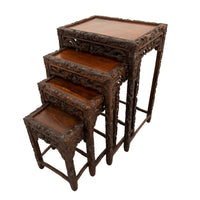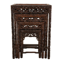 Antique Set of 4 Chinese Qing Dynasty Rosewood Carved Dragon Nesting Tables 1880