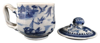 Antique Chinese Qinq Dynasty Canton Blue & White Porcelain Pot de Creme, Circa 1820