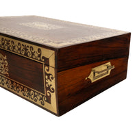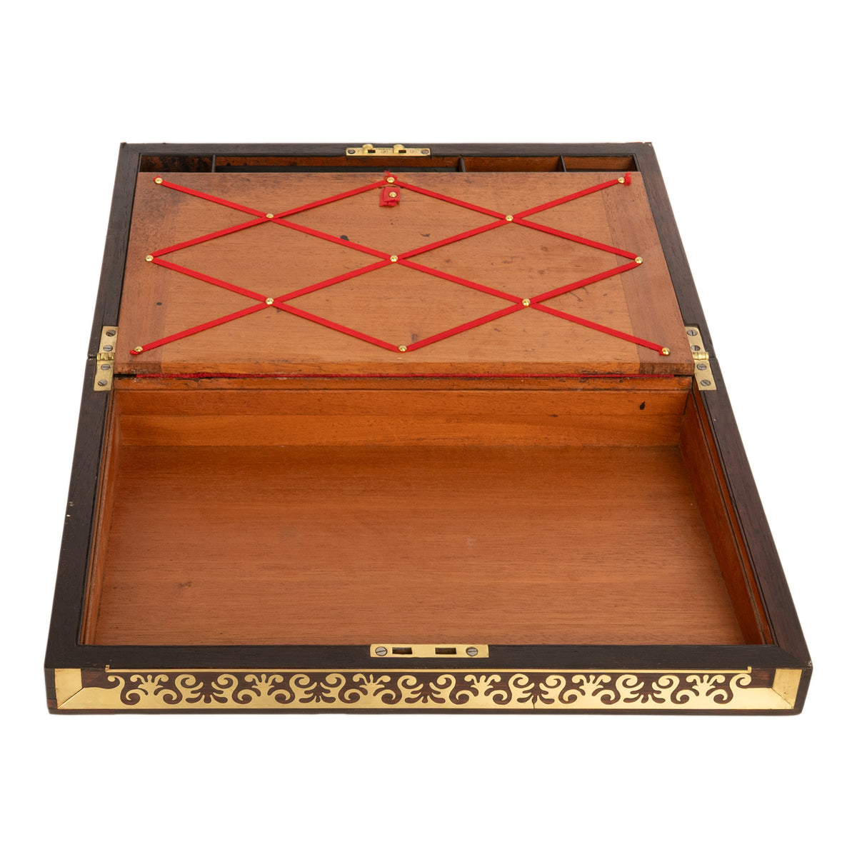 Fine Antique Regency Rosewood Inlaid Brass Campaign Writing Box Desk Slope 1830
