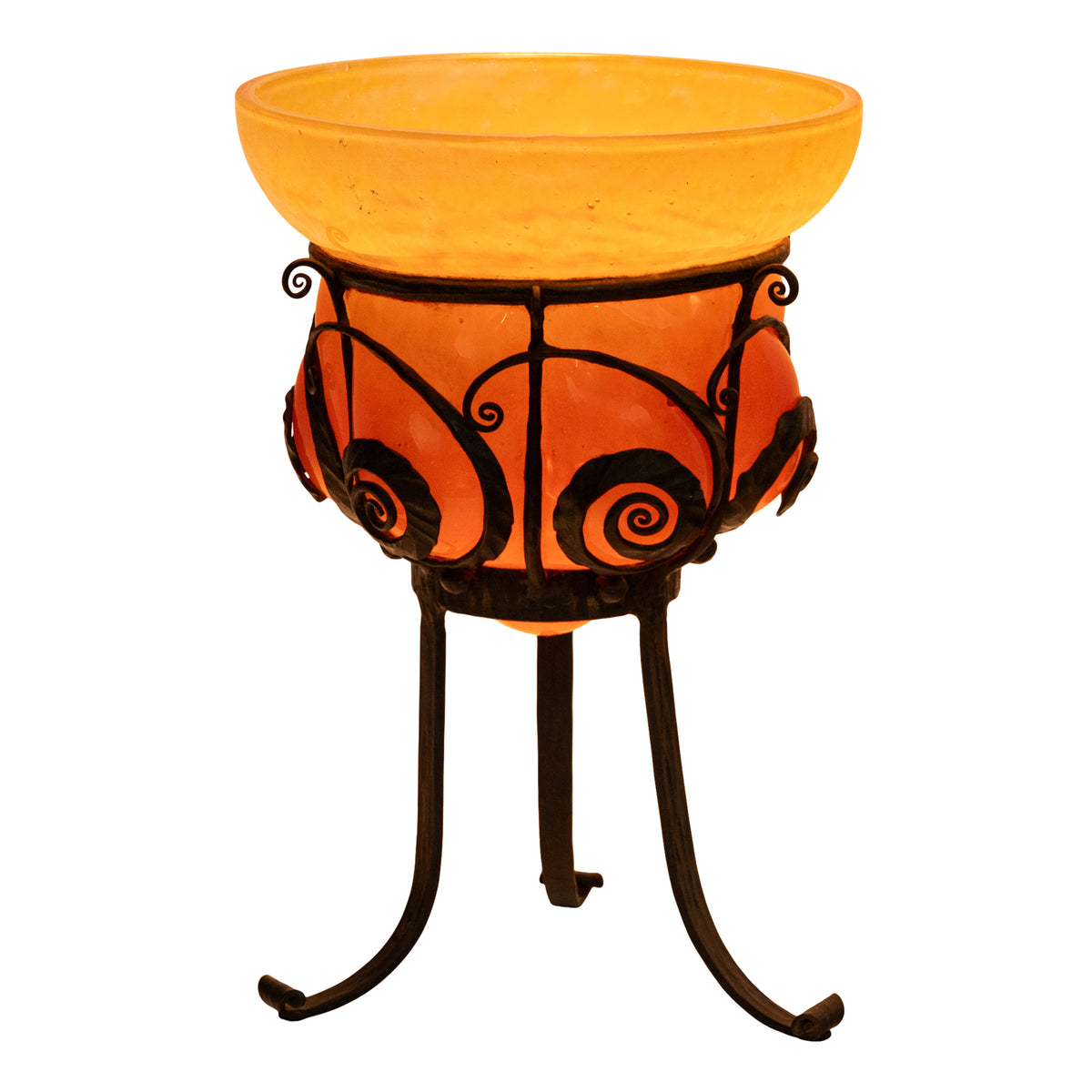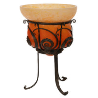 Large Antique French Art Deco Charles Schneider Glass Bowl Iron Stand 1920
