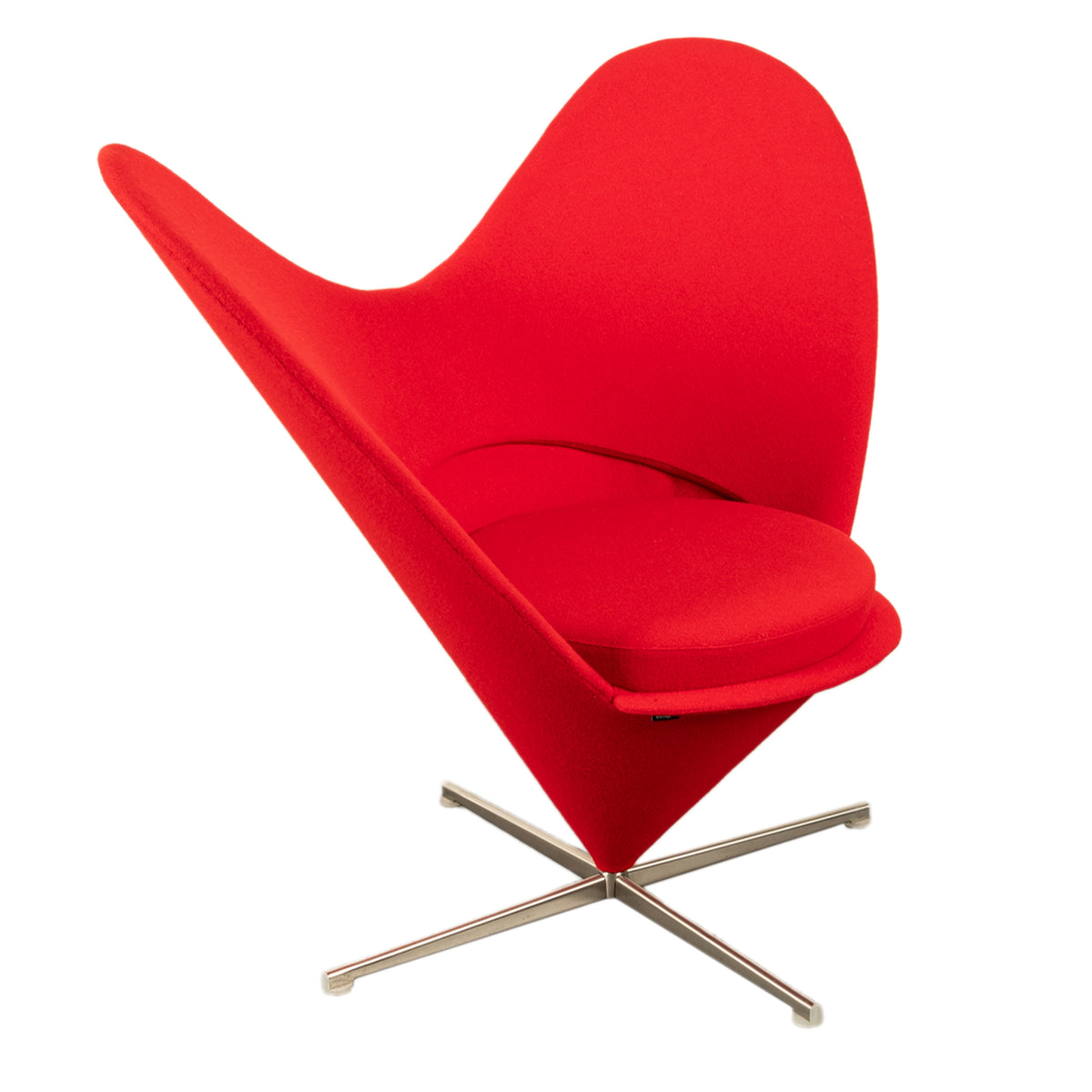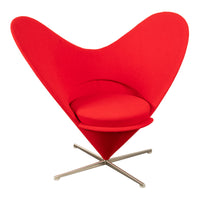 The Red Heart Chair by Verner Panton for Vitra is a striking example of mid-20th-century design that marries playful aesthetics with innovative form. Originally designed in 1959, the chair's heart-shaped structure is not only visually captivating but also an exploration of new materials and techniques. The chair's sculptural silhouette is a testament to Panton's bold vision, creating a piece that blurs the line between furniture and art. Its distinctive red color enhances its emotional appeal, making it a standout in any modern interior.